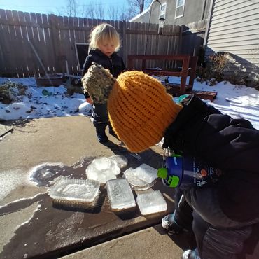 We have a fenced in front and backyard with an oversized sandbox, mud-kitchen, bikes, scooters, cars, tree stumps, sticks, overturned landscaping pavers, compost bins, wheelbarrows, 40 gallon bins, worms, roly-polys, hummingbirds, aforementioned squirrels, bunnies, yard-tools, easels, ladders, step bridge, wildlife feeders, sensory bins, fairy gardens, vegetable gardens, baby cucumbers, cherry tomatoes, sunflowers, firepit, sports balls, sprinklers, native plants, pollinator friends and all the big gross motor things we kept inside during the winter. I keep trying to overgrow a playhouse we have covered in chicken wire with edible vines (scarlet runner beans and spinach malabar) but fail. If it works this year, it will be the reading nook.