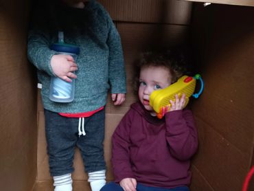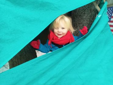 This "play room" is really special and is a large sunlit space with new carpet, windows on three sides and views of tree tops and meandering squirrels on the fence. As light and dark have such a strong influence on young children's rhythms, I make every effort to keep us outdoors when we can be and in a well daylit and natural environment if the temperature is below 20 degrees or our babies are napping. That being said naps are in an adjacent main level bedroom with room darkening curtains that work really well and a Dohm noisemaker.